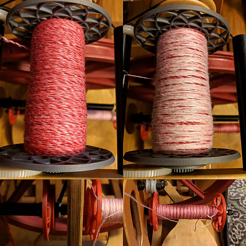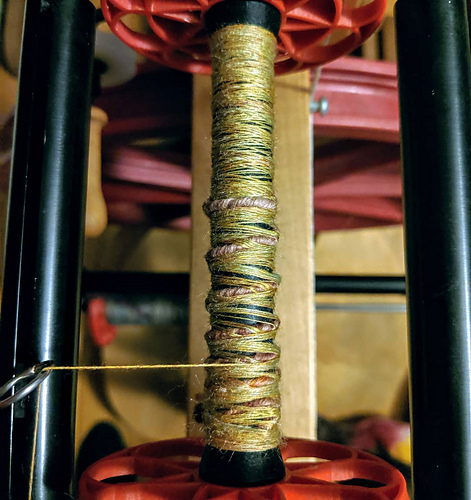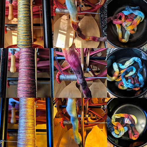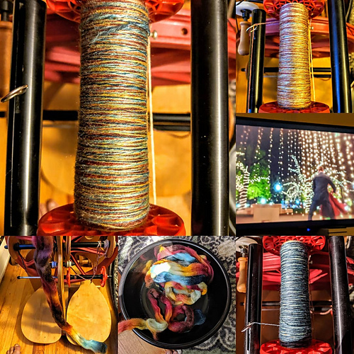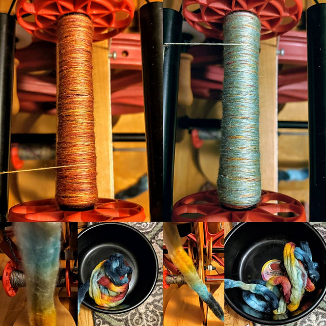 I decided to split it down the middle & spin the singles on two bobbins. Figure I can see what a two ply looks like as well as Navajo/chain plying. The colors are so bright that I want to keep them clean & have them pop. I really want the yardage of the 2-ply. But may decide that Navajo/chain plying is a better way to go to keep the colors strong & saturated.