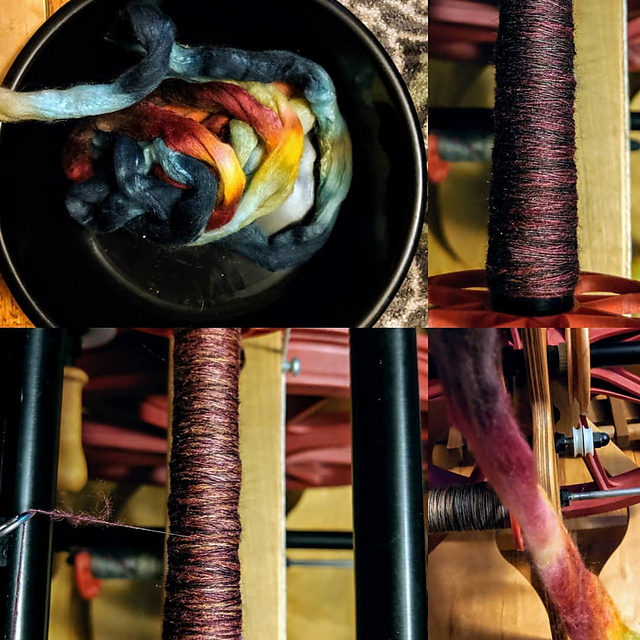 I decided to split it down the middle & spin the singles on two bobbins. Figure I can see what a two ply looks like as well as Navajo/chain plying. The colors are so bright that I want to keep them clean & have them pop. I really want the yardage of the 2-ply. But may decide that Navajo/chain plying is a better way to go to keep the colors strong & saturated.